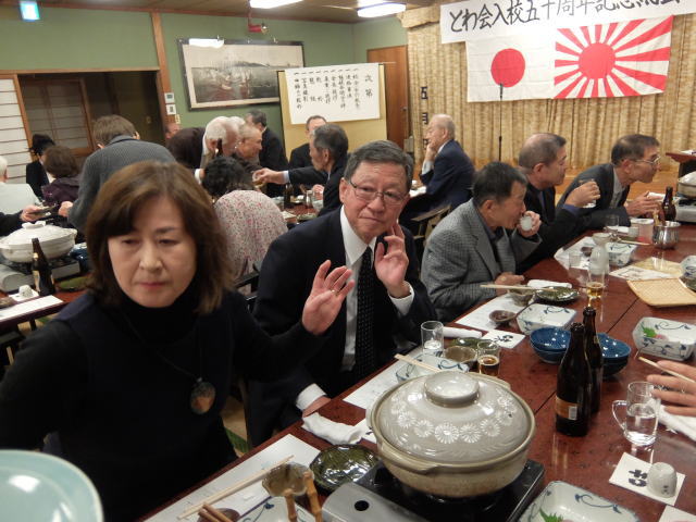 10年振りに再会、江田島入校50周年を記念してのとわ会を挙行できますこと、先ずはここにお集まり下さった同期の皆さん、奥様方と喜びを共にしたいと存じます。同期生47名、奥様方16名計63名の参加を頂きました。遠く北海道から中山君の参加を頂いております。また40周年江田島再訪には参加されませんでした泉君、竹澤君、田中君、山下(正克)君、竜田君の参加を頂いております。