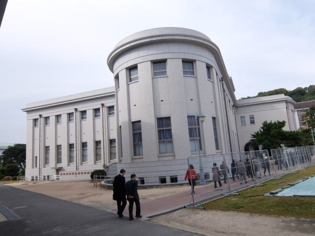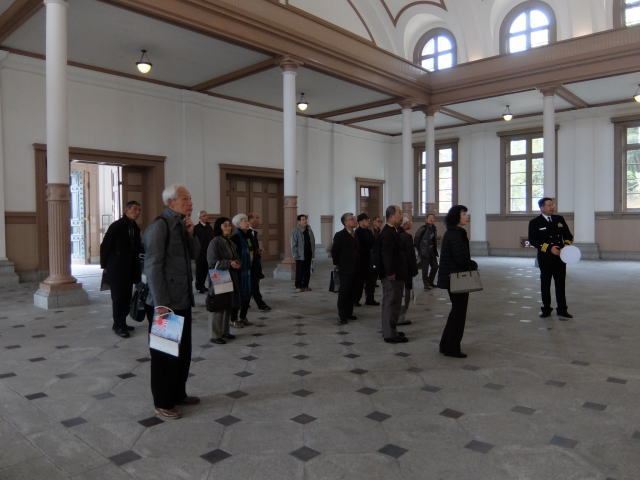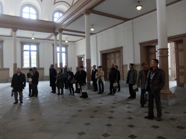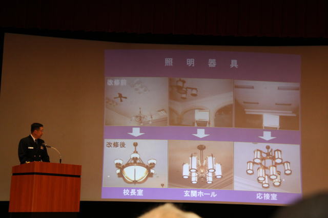 現状説明終了後、3組に分かれて校内見学を行いました。 見学場所は、大講堂、学生館、教務班講堂、教育参考館です。