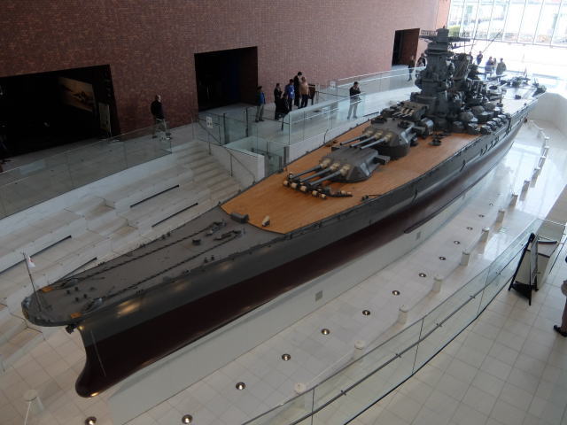 戦艦「大和」は、昭和16年(1941年)、呉海軍工廠で建造された世界最大の戦艦です。しかし、昭和20年4月7日、沖縄特攻作戦に向かう途中、米艦載機の攻撃を受け沈没しました。 大和ミュージアムには10分の1戦艦「大和」が展示されています。