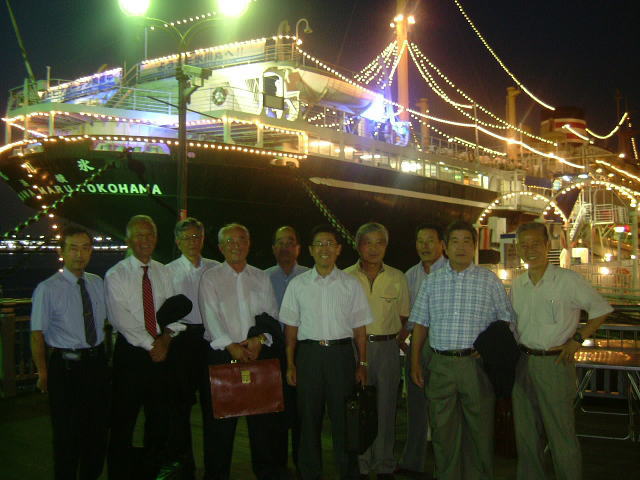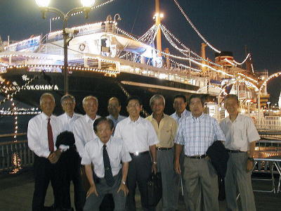 横浜地区定例会を実施した。 1 期日 平成18年8月31日(木) 2 場所 横浜市山下公園前桟橋係留中の「氷川丸」 3 参加者 梅野、岡本、亀井、児玉、崎田、竹村、中尾、中島、山下、山田、渡部(11名)