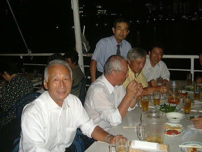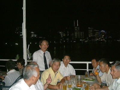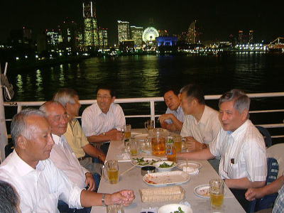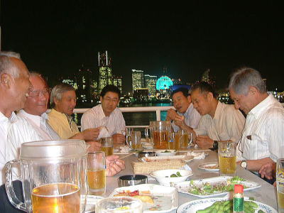 しかし、計画担当の児玉の工夫で係留中とはいえ、「氷川丸」の甲板上で実施でき、涼しい天気にも恵まれ、横浜桜木町のホテル群を海を隔てて一望にできる、これまでに見た中で最高の夜景を、生ビールを飲みながら満喫でき、最高の定例会となりました。 初めての船上でしたが、広い甲板に並べられた沢山のテーブルはほとんどが埋まっており(ほとんどが若者でしたが)、景気が活況に向かっている一端を感じました。