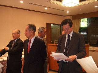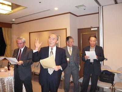 この忘年会は、平成11年に退職後勤務場所が近いことから「たまには昼飯を一緒に」ということから、保科君と小西君とで始めた浜松町で毎月1回行われている昼食会が、その起源となっています。 今年から幹事が保科君から角田君に引き継がれています。
