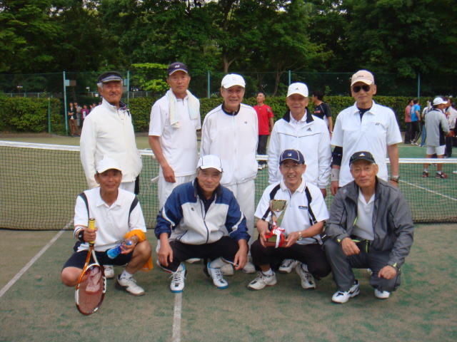 5月16日晴天の中、300名以上の参加者により大会が行われました。 今回もグランドシニアの部に参加しました。 今年は去年の覇者の児玉・渡部組と南須原・三原組、伊藤・白畑組、金子・佐藤組の4組と応援組に廻った松井君が集まりました。 対戦結果のようにベスト4に3組も残り、11期の独壇場となりました。又惜しくも1回戦で敗退した、金子・佐藤組はコンソレで準優勝と大活躍でした。 大会終了後はいつもの場所で祝勝会を行い、来年の大会へのさらなる飛躍を誓い解散いたしました。