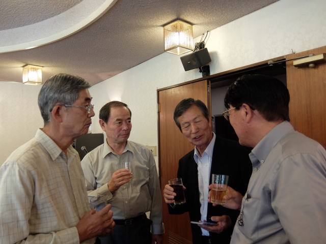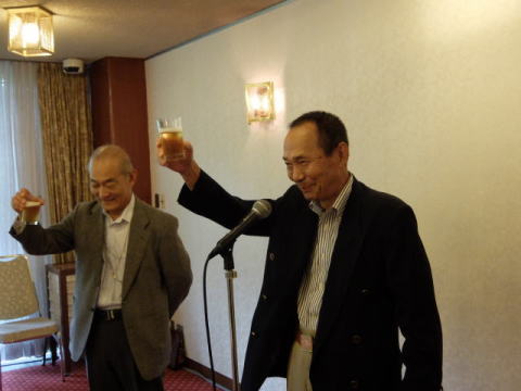 この機会にとわ会の活動について少しくお話し致します。活動と言っても大したことはありませんが・・・・・・ 水交会主催の靖国神社等参拝は4月と10月を除く毎月、東京近郊に居住されている方にお願いしておりますが、出来るだけ多くの方で分担して今後とも継続して行く必要があり、突然メールで参拝予定者にリストアップされることがありますので驚かないで下さい。都合の悪い方、支障のある方は遠慮なく申し出て下さい。 月に一度の昼食会が角田君から岡本君に幹事が引き継がれ浜松町のフライパンという食堂で実施されております。 主として東京勤務経験者が出席しておりますが、参加したことのない方の出席をお待ち致しております。情報交換の良い場です。 年に一度、水交会主催の「海自OB会等諸団体等連絡協議会」が水交会で11月初旬に実施されておりますが、会長が18期期生会代表として参加しております。当初会議内容をとわ会ホームページで皆さんにお知らせ致しておりましたが、ここ数年お知らせするまでもないことと私のズル心からホームページに載せておりません。 とわ会とは関係ありませんが、この場をお借りして防大出身者へのお願いです。 毎年防大開校祭の1日目に殉職者顕彰碑への献花式に各期期生会代表者が参列致します。11期期生会につきましては陸・海・空輪番での参列が筋ですが、指定が煩雑に過ぎることもあり、防大近郊に居住者が多い海上で引き受けることと致しました。 私が11期期生会長就任後暫く出席致しておりましたが、山田道雄君に代理出席をお願いした機会に今後は防大近郊にお住いの方にお願いすることとして、昨年は金子君に代理出席して頂きました。今年は河本君に代理出席して頂きます。母校再訪問の良い機会となること必定です。 今後とも靖国参拝予定者の指定時に合わせてお願い致しますので御承知おき下さい。勿論御都合の悪い方は申し出て下さい。 いよいよ我がクラスも人生の最終コナー・・・・最終コナーと言うことは少々憚れますが・・・・いや仕上げのステージに入ったと言う方が良いでしょう。 ここにお集まりの皆さんは充実した日々をお過ごしと存じますが、クラスの幾人かは病の床に伏せっております。1日も早い回復をお祈り致したいと思います。 充実した中身の濃い人生の仕上げは何と言っても健康が必要条件です。早めの診断早めの処置で呉々もお身体お厭い下されたくお願い申し上げます。 長くなりました。どうぞ時間の限り歓談なされ、旧交を温めて頂きたくお願い申し上げます。