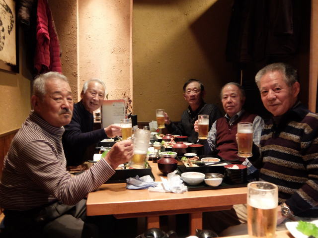 次の通り、横浜地区定例会を実施しました。 1 期日・場所 平成28年11月28日(月)横浜市関内 2 参加者 池田、岡本、亀井、児玉、崎田、竹村、中島、古澤、松井(9名) 3 会の状況等 昼間の実施にして2年目ですが、概ね定着。 夜に比べて酒の量は格段に減少し、かなり健全になったように感じます。 日程が合わず、参加者は9名でしたが、参加者中仕事を継続中の者は1名のみで、皆かなり時間には余裕のある生活で、趣味を生かす等、十分に活動しており、皆元気です。 中島
