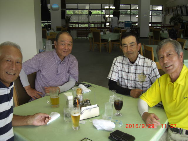 当初は、秋雨前線の南下で、雨の予報でしたが、予報官の予想当たらず、朝方、曇りでしたが、プレイ中は、おてんとうさまも顔を出し、湿度が高く蒸し暑い状況の中でも、久しぶりに、同期がガヤガヤと和気あいあいのプレイを楽しむことができました。