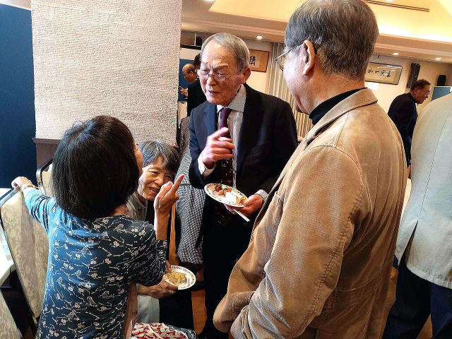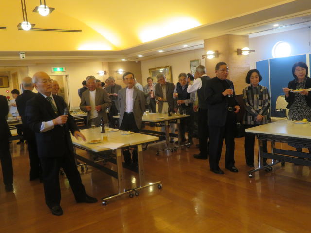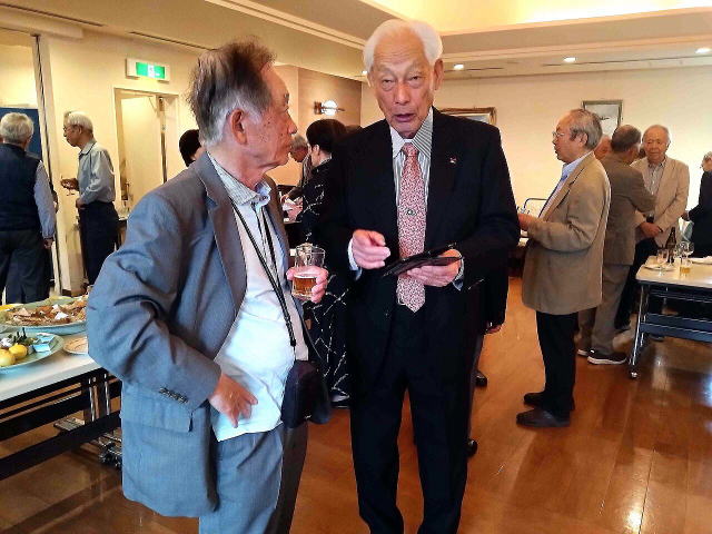 討議は30分ほどで終了し、中山君の乾杯の音頭で歓談に入りました。歓談中に全会員の近況を一人一人短時間(約