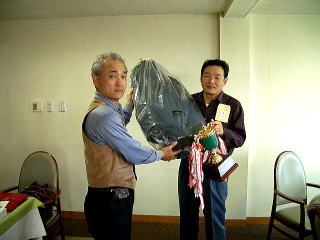 既にコンペ翌日のクラス会でお聞き及びのことではありますが、角田、河本というメンバーに恵まれ、しかも気楽な最終組であったこともあり、見事、優勝の栄に浴し、幸運にも、いつになく豪華な賞品を山ほど頂きました。