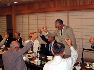 小生からクラスの状況報告「入校時150名だった18期も石川統幕議長、田中警務官、佐野・南須原両ドックマスターの4名を残しすべて退職しました。<男子三日会わざればカツ目してみるべし><教育の成果はすぐには分からない、教え子の10年・20年後を見よ>という言葉があります。しかし、36年後では成長ぶりというよりは変わり果てた姿とでもいうべきでしょうか・・・いずれにせよ教育者にとって教え子の姿を見るものは嬉しいものと思います。今後ともこのような機会を作っていただきたい。」・・という趣旨のことを言ったつもりだが昼間の熱燗と悪声のせいでうまく通じたかどうか、もう少し気の聞いたことをいえばよかったと反省している。
