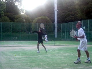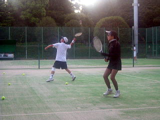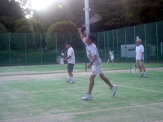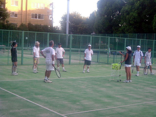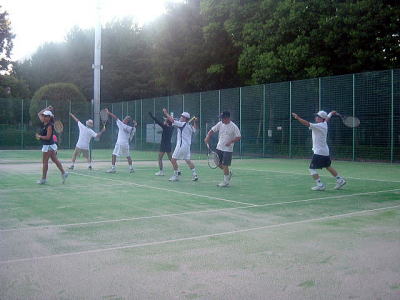 真夏日の続く8月19日に、麻布運動場テニスコートにおいて、テニス強化訓練を行いました。 暑いので当初計画から1時間繰り下げましたが、それでも15時から19時までの4時間という強化訓練でした。