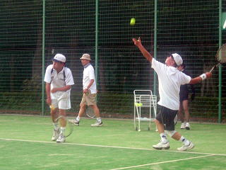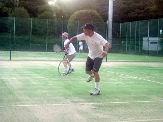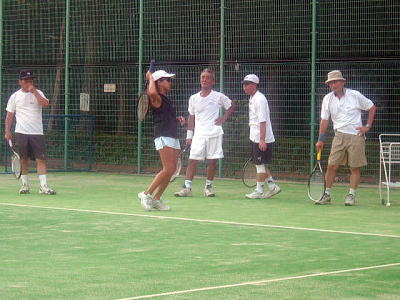今回の参加者は伊藤、児玉、小西、澤、白畑、竹村夫人、松井の7名です。 今回は男性主体の訓練ということで、女性の参加は1人でした。 コーチは伊豆のテニス合宿からお世話になっているMの親戚に当たるHコーチです。