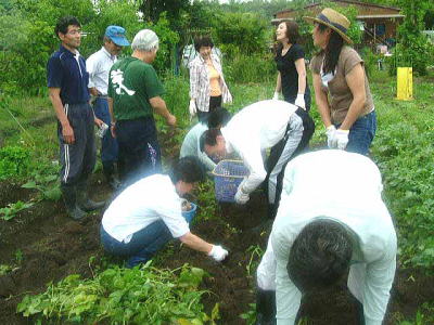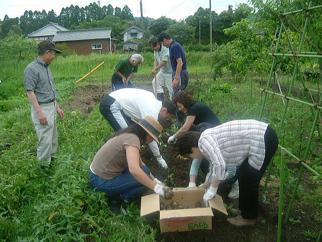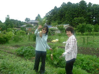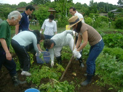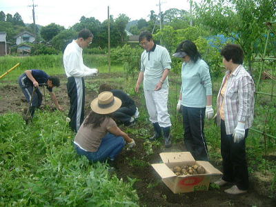 ジャガイモのほか、玉葱、ダイコン、スナックエンドウなどいろいろな作物の収穫も経験させてもらいました。 田舎出身のものは久し振りの故郷の思い出に浸り、また都会出身の方は初めての経験もした一日でした。