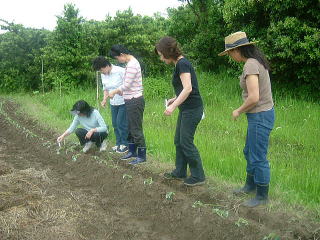 長谷農園主があらかじめ準備していた畝に苗を植え、その傍に名札を建てて、無事の収穫を祈っておりました。