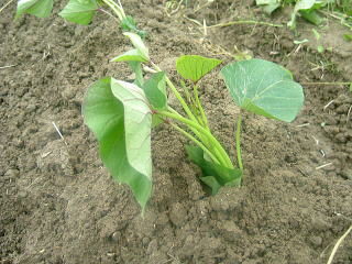 ジャガイモ掘りに引き続いて、秋の収穫に向けてサツマイモの苗の植付けが行われました。 これも初めての人がいたようです。