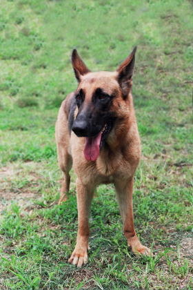 松之助とは一年半ぶりの再会だったが、顔は安芸そっくりである。つい最近、吉浦に行った時は警戒任務についており、犬舎には居なかった。背丈は雌の安芸と変わらないぐらいであるが、スリムで引き締まっている。兄弟四頭の中で初めて警戒の部に出場する等、警備犬としての訓練は順調に進んでいるようである。